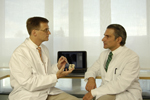 The experienced colleagues in the EMMA KLINIK select and apply different microsurgical techniques in order to alleviate and treat herniated discs and other spinal pathologies. To restabilize the spine, for example, mini devices made of titanium may be used. A small incision or a percutaneous approach is sufficient to introduce and place these devices where required. The EMMA KLINIK offers also endoscopic treatment options as further less invasive alternatives.